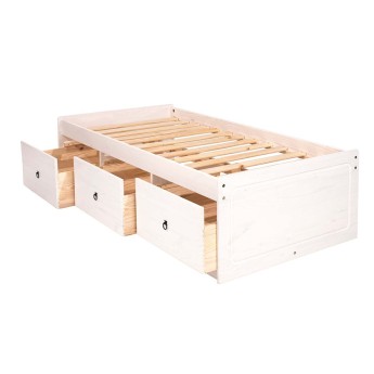 White Solid Pine Wood Single Bed Frame
