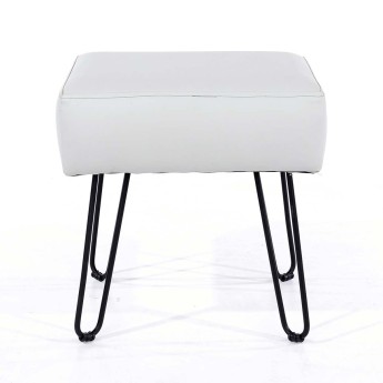 Grey PU Upholstered Rectangular Stool With Black Hairpin Legs
