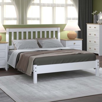 White & Natural Two-Tone Pine Wood Double Bed Frame
