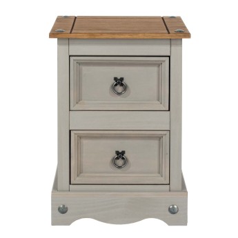 Corona Grey Mexican-Inspired 2 Drawer Petite Bedside Cabinet