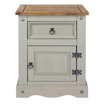 Corona Grey Mexican-Inspired Door & Drawer Bedside Cabinet