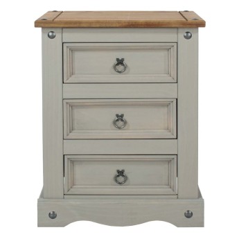 Corona Grey Mexican-Inspired 3 Drawer Bedside Cabinet