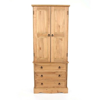 Corona Mexican-Inspired Narrow Antique Waxed Pine Wardrobe