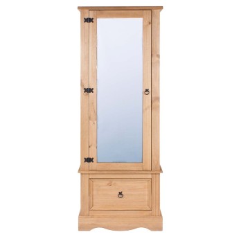 Bring rustic charm and practical elegance into your bedroom with the Corona Armoire Mirrored Wardrobe. Expertly crafted from solid pine with an antique wax finish, this wardrobe embodies the warmth and character of traditional Mexican-inspired design. Its tall mirrored door not only adds a touch of light and spaciousness to your room but also provides...