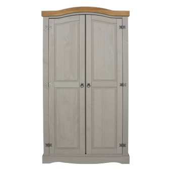 Bring timeless charm and practicality to your bedroom with the Corona Grey Antique Waxed Pine Wardrobe. This piece beautifully combines a rustic Mexican-inspired design with a modern grey wash finish, enhanced by the contrasting antique waxed pine top. The double doors open to reveal a spacious hanging rail and shelf, providing ample room for clothing and...